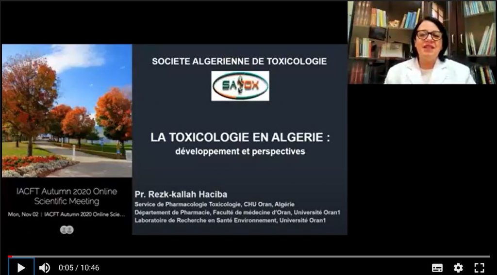 Autumn 2020 Virtual Meeting Inaugural meeting of IACFT La Société Algérienne de Toxicologie, SATOX est partenaire durant cet évènement Une introduction sur la toxicologie en Algérie est présentée par le Professeur Rezk-kallah Haciba, présidente de la SATOX